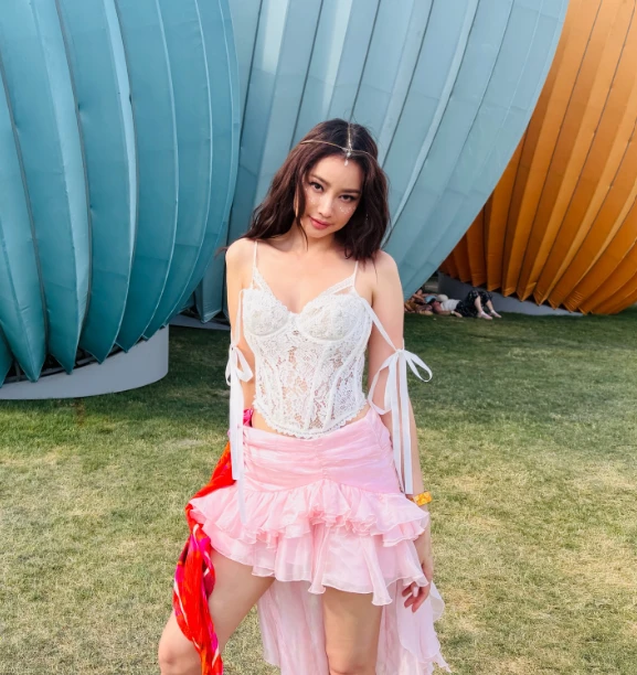Cô lựa chọn trang phục mang đậm tinh thần tự do của lễ hội khi kết hợp áo corset ren trắng ôm sát cùng chân váy hồng layer bồng bềnh. Bộ outfit không chỉ giúp Trúc Diễm khoe trọn vóc dáng săn chắc, đôi chân dài mướt mắt mà còn tôn lên vẻ quyến rũ, nữ tính. Dưới ánh nắng rực rỡ của vùng California, nhan sắc của mỹ nhân từng chinh phục các đấu trường sắc đẹp quốc tế được nhận xét là ngày càng thăng hạng. Lối trang điểm nhẹ nhàng cùng mái tóc xõa tự nhiên giúp cô ghi điểm tuyệt đối, khiến ít ai tin rằng nàng Á hậu đã chạm ngưỡng tuổi 39.
