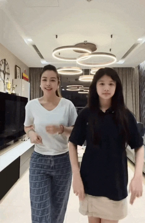 Recently, Jennifer Pham caused a stir on social media when she shared a short clip of herself and her eldest daughter, Thuy An, dancing to a trend. While the former beauty queen amazed everyone with her ageless beauty, looking as young as her daughter's older sister, little Na stole the spotlight. At 13 years old, Thuy An is no longer the petite girl she once was; she's grown taller and more confident, showcasing skillful dance moves and incredibly natural expressions in front of the camera.