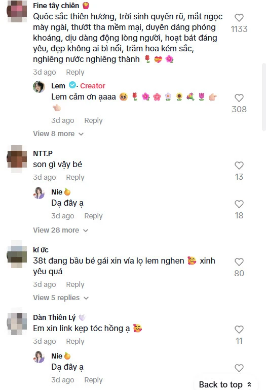 Điều đáng chú ý, Lọ Lem không chỉ được chú ý nhờ ngoại hình mà còn nhờ cách cô cư xử và tương tác với người hâm mộ. Sự lễ phép, thân thiện trong mỗi phản hồi bình luận đã giúp cô ghi điểm trong mắt netizen, tạo nên hình ảnh một cô gái vừa năng động, vừa tinh tế. Nhờ đó, Lọ Lem được xem là một trong những "tiểu hoa hậu mạng xã hội" nhờ vẻ đẹp tự nhiên và cách ứng xử thông minh.