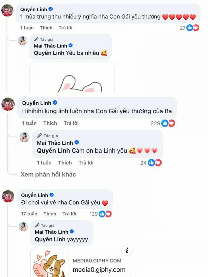 On social networks, Lo Lem's daily moments always receive special attention. However, what moves fans the most is the way Quyen Linh shows his love for his daughter. The famous MC often leaves comments under his daughter's posts, with compliments and the familiar words "beloved daughter". These simple but warm gestures not only show the close, loving relationship between father and daughter, but also highlight the image of a happy family, full of affection.
