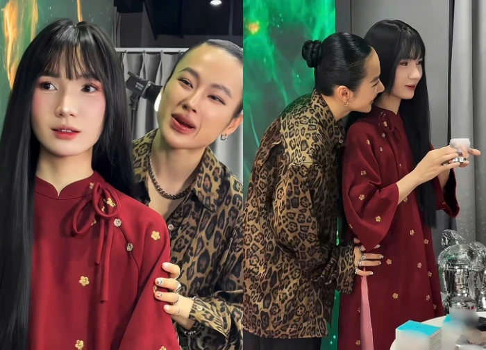 Angela Phuong Trinh is a familiar name in the Vietnamese entertainment industry, always attracting special attention whenever she appears. Recently, the actress once again became the center of discussion when she unexpectedly transformed into a "young master" with a masculine and strong style. In the clip and series of images circulating on social media, Angela Phuong Trinh did not hesitate to hold hands with and hug another beautiful woman, accompanied by extremely flirtatious glances to portray a manly image.