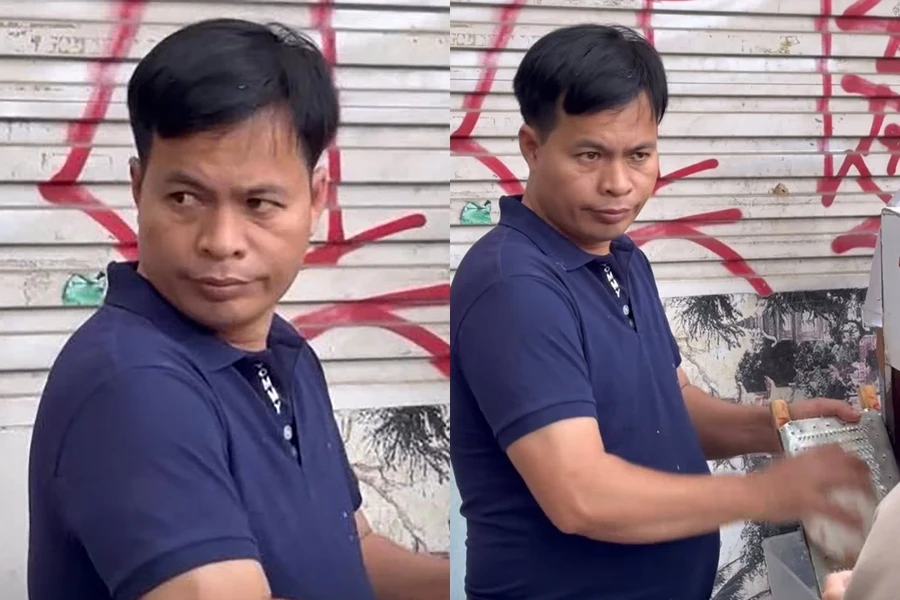 The clips capturing this moment quickly attracted millions of views. In the comments section, netizens were amused, with many even claiming he looked more like an undercover police officer on duty than a street vendor. His resolute gaze, heightened vigilance, and calm demeanor created a strange allure, drawing crowds of customers curious about the man's true identity.