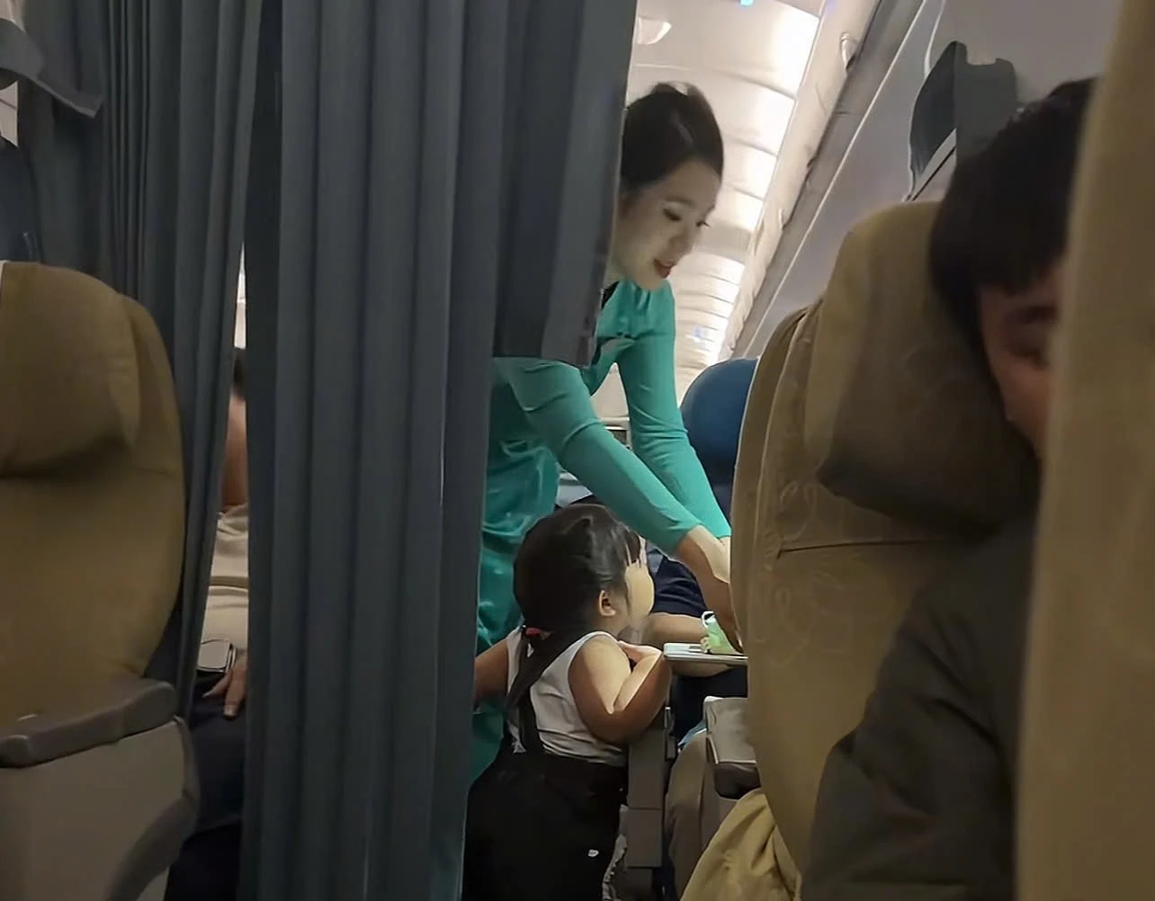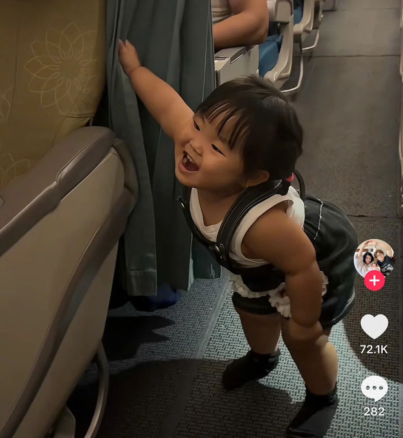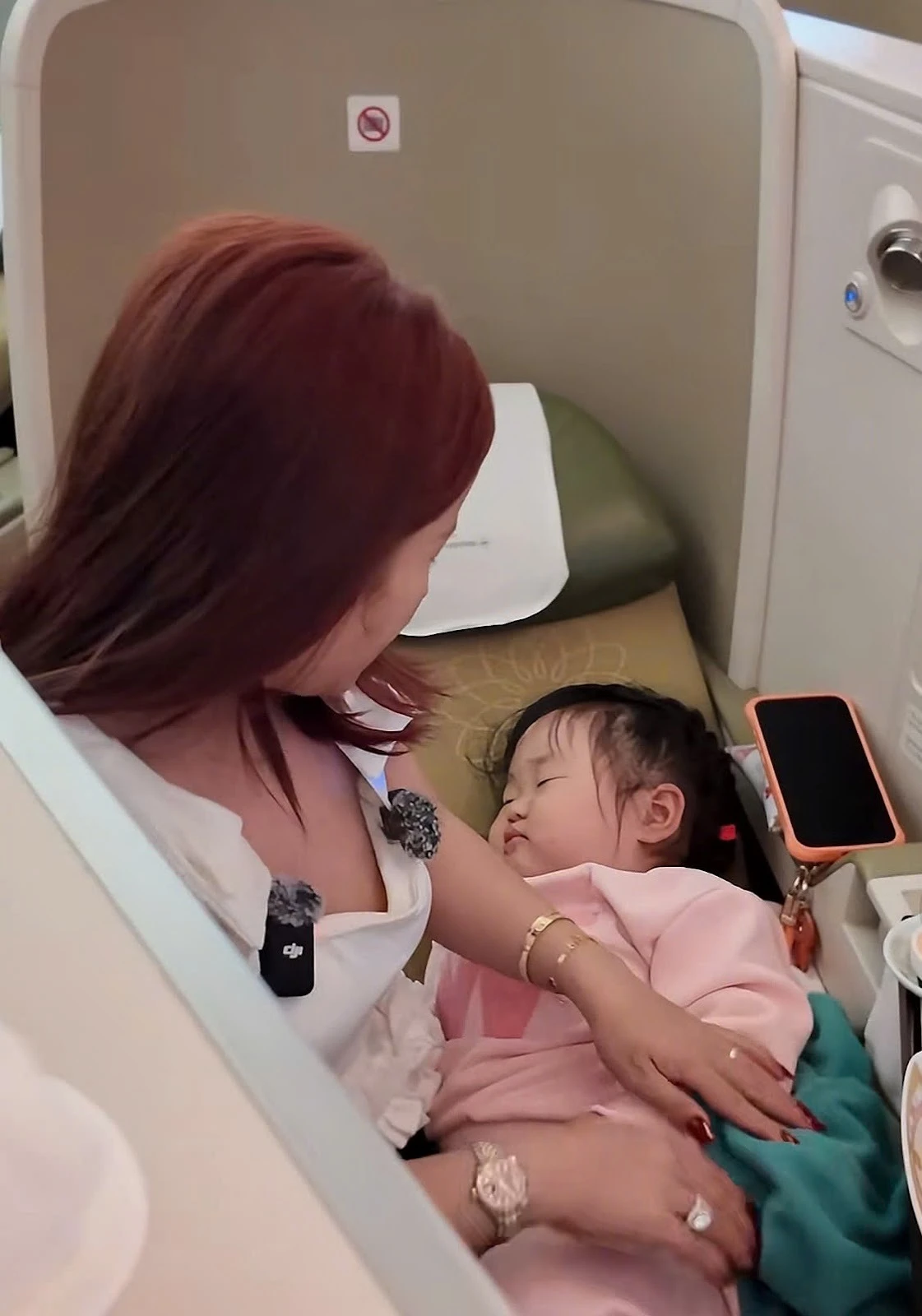 Theo những hình ảnh được chính Bà Nhân Vlog chia sẻ, trong chuyến bay dài, bé Tiểu Bối liên tục chạy nhảy khắp các lối đi, dừng lại ở vị trí của những hành khách lạ và cười nói vô tư. Đáng chú ý, thay vì giữ con ngồi yên tại chỗ để đảm bảo an toàn và trật tự, nữ YouTuber lại thoải mái cầm máy quay theo sát con như ở "chốn không người".