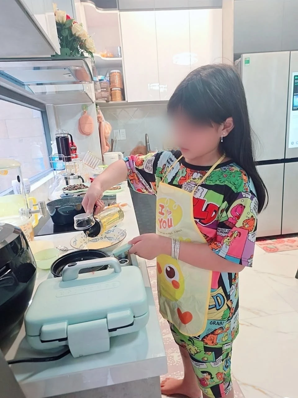 In the photo posted by the female artist, Bella made the cake herself, waiting for her mother to come home from singing to eat together. Accompanied by the sharing line: "Sunday... I make cakes at home with my own hands... Waiting for Mom to sing and come home to eat... Love you so much... Thank you." Just a small gesture contains a lot of emotions: the subtlety of a child who understands things, and the unspoken love of a daughter for her mother.