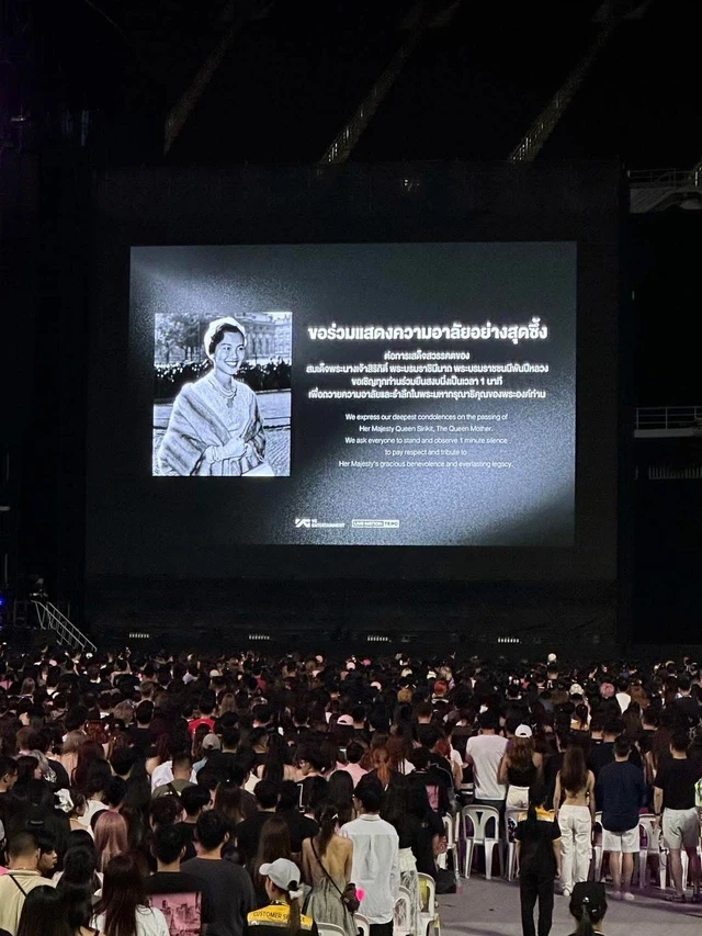 Thông báo chính thức được đưa ra: "Để tưởng nhớ và thể hiện sự kính trọng sâu sắc đối với Vương thái hậu Sirikit, chúng tôi trân trọng đề nghị tất cả khán giả tham dự concert BLACKPINK tại Bangkok mặc trang phục màu đen hoặc trắng để bày tỏ sự tiếc thương và tôn kính". Hành động đồng lòng tự nguyện này đã chứng minh sự tinh tế, nhân văn của cả nghệ sĩ và cộng đồng fan Kpop.