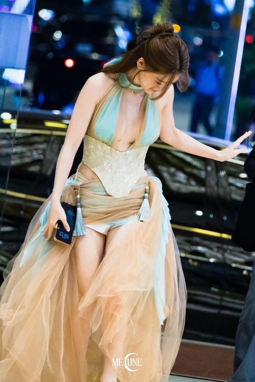 Không một chút biến sắc, cô nhanh chóng dùng tay giữ nếp váy, trụ vững đôi chân và lấy lại thăng bằng một cách vô cùng uyển chuyển. Thần thái sắc lạnh, ánh mắt vẫn kiêu kỳ như chưa hề có chuyện gì xảy ra đã biến một sự cố hy hữu trở thành một khung hình đầy tính nghệ thuật.