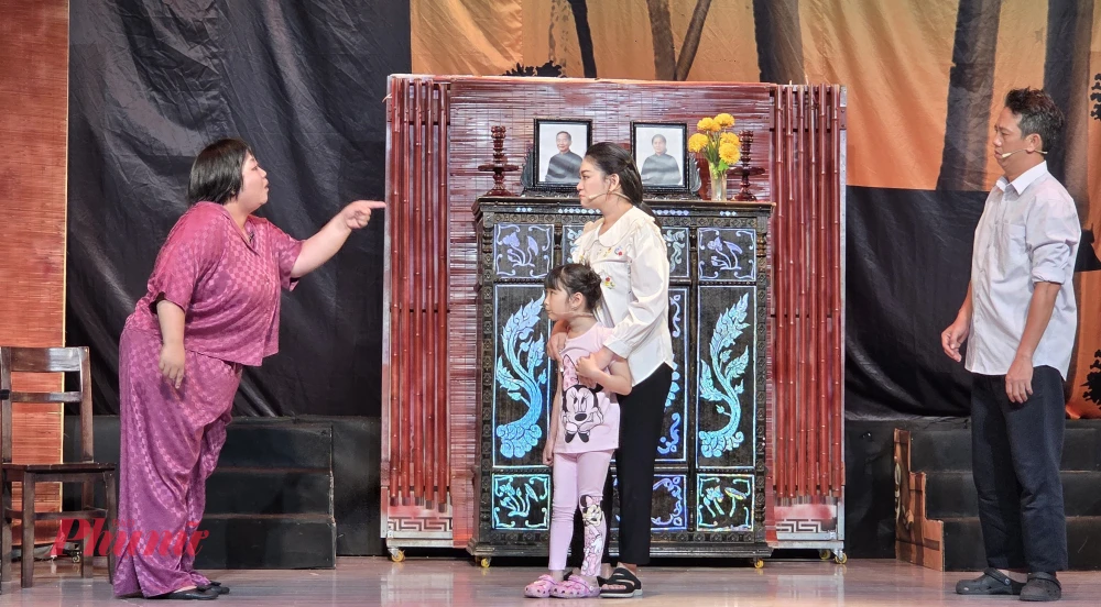 One of the highlights of the play is the strange incarnation of Artist Binh Tinh. Different from the usual image of her peach martial arts cai luong, Binh Tinh plays the role of a harsh sister-in-law, specializing in bullying her husband and being harsh with her brother-in-law. Her diverse acting brings a new breeze, both inhibiting but also convincing to the audience.