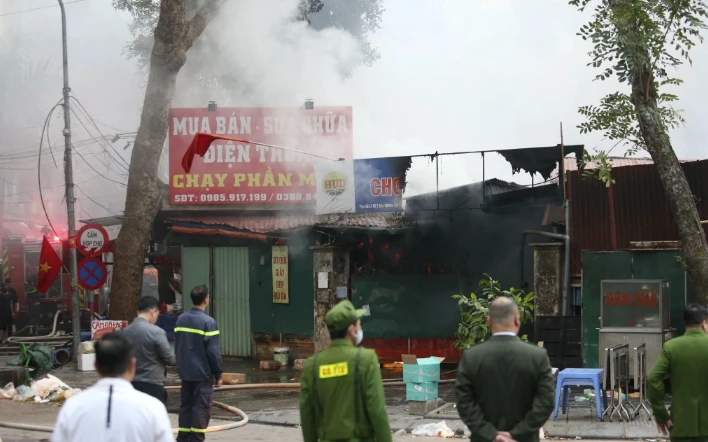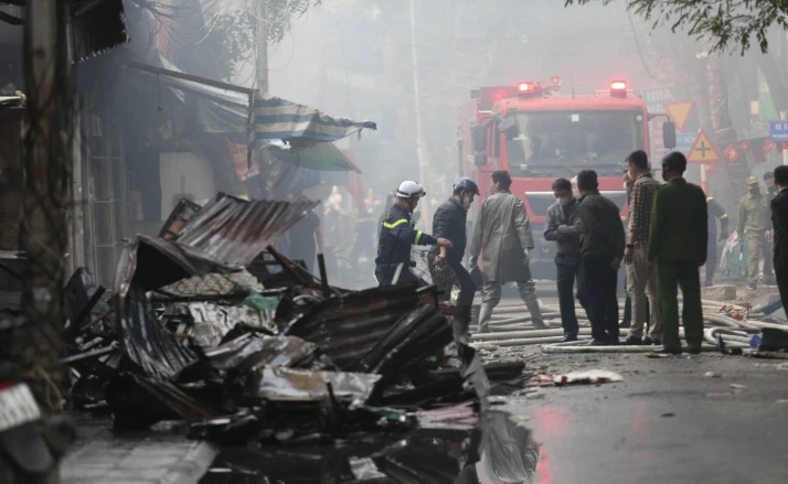 The Hanoi City Police Fire Prevention and Rescue Force quickly mobilized numerous fire trucks and dozens of officers and soldiers to the scene. Firefighting efforts faced considerable difficulties due to the large fire, the narrow passageways of the market, and the corrugated iron roofs that completely covered the area. Authorities were forced to use excavators to demolish kiosks and create access routes to the interior to extinguish the fire and prevent it from spreading.