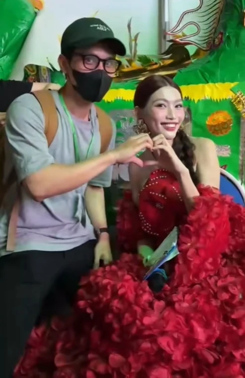 In the clip, the runner-up's husband appeared backstage at an event she attended wearing a simple T-shirt, jeans, a hat and a mask covering his face. This modesty made netizens comment that the two looked exactly like "fans taking pictures with their idols". Even the fact that they turned to thank each other after taking pictures and then left added to the misunderstanding. When they found out that it was Ngoc Phat, Quynh Chau's fiancé, many people couldn't help but exclaim in surprise.