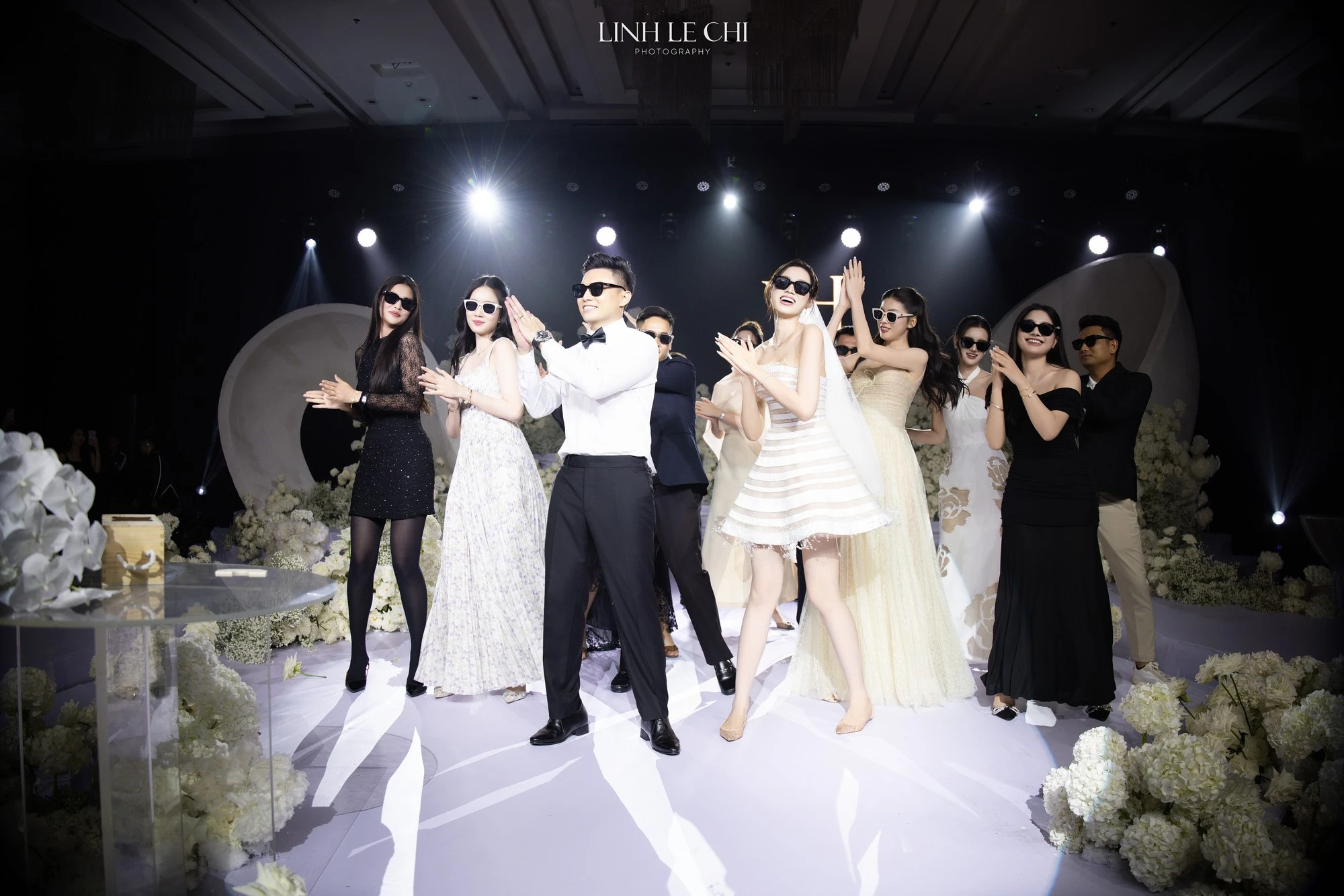 The most shared highlight at the party was the "explosive energy" dance performance of the couple and friends. After completing traditional rituals such as reading vows, thanking parents on both sides and throwing wedding flowers, the bride and groom did not hesitate to step on stage to "wave" their hearts out in the applause and cheers of the guests.