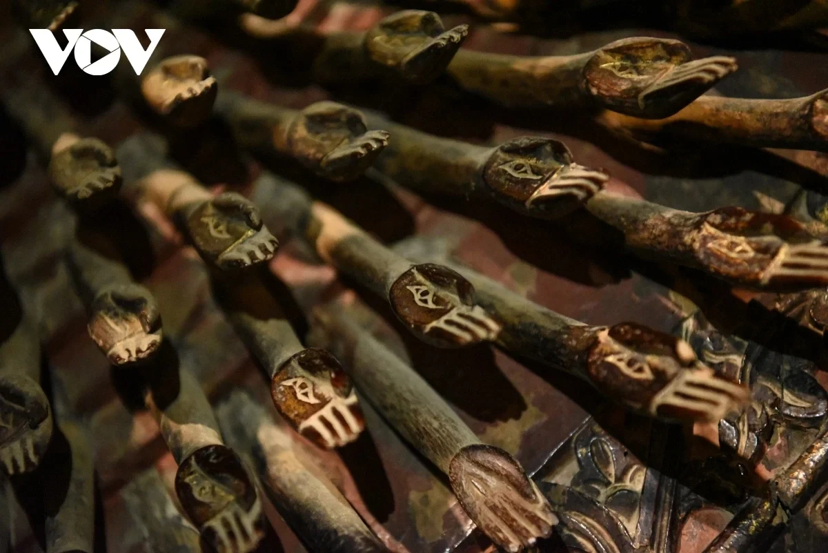 Ẩn mình dưới bệ tượng gỗ cao 3,7m tại Chùa Bút Tháp, 10 chữ Hán được khắc cách đây gần bốn thế kỷ đã hé lộ danh tính hiếm hoi của người tạc nên tuyệt phẩm Phật Quan Âm nghìn tay nghìn mắt.