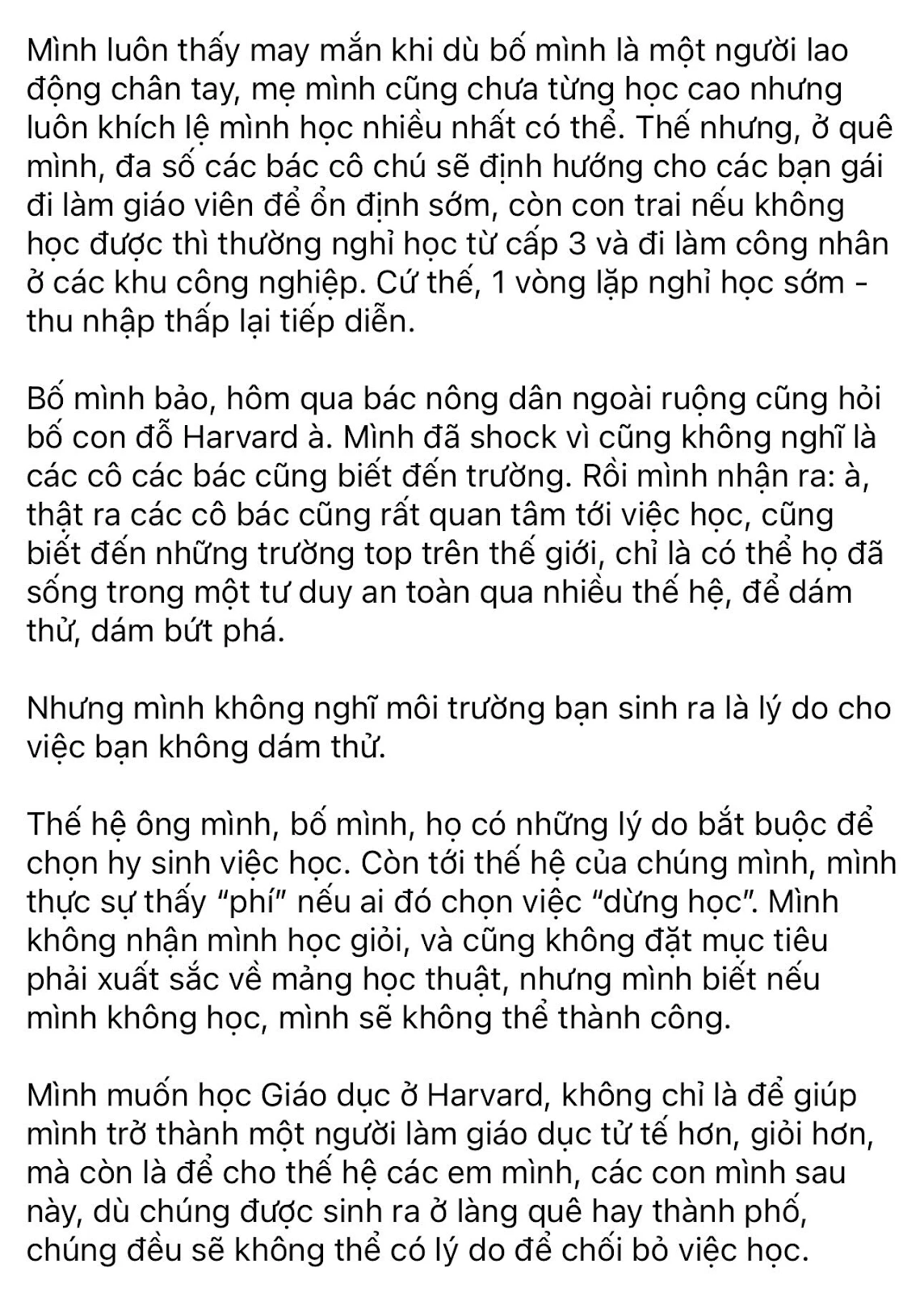 Sự việc bắt đầu khi Phương Anh chia sẻ niềm hạnh phúc vỡ òa khi nhận thư trúng tuyển chuyên ngành Thiết kế Giáo dục, Đổi mới và Công nghệ tại Harvard hôm 6/3. Ở tuổi 22, cô gái trẻ quê Bắc Ninh khiến nhiều người ngưỡng mộ bởi bảng thành tích học tập xuất sắc cùng một xuất phát điểm khiêm tốn. Theo lời kể của Phương Anh, cô sinh ra trong một gia đình không mấy khá giả, có bố chỉ học hết lớp 5 và mẹ là giáo viên mầm non chưa từng bước chân vào giảng đường đại học.