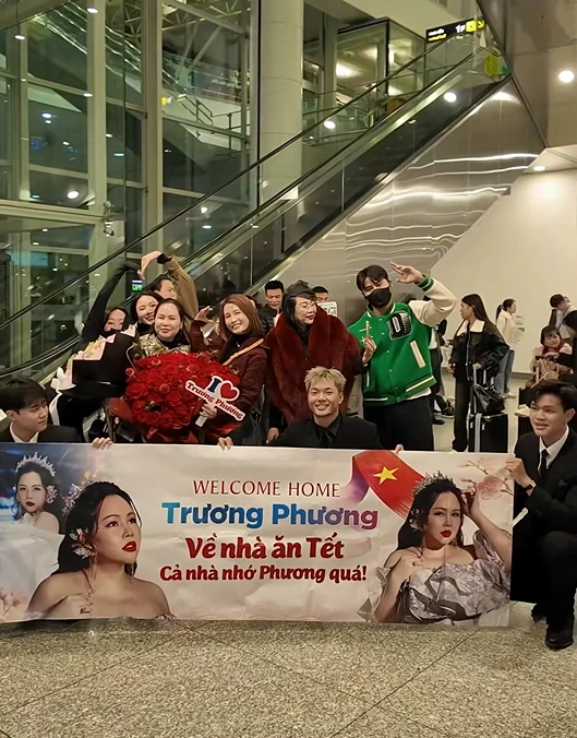The days leading up to Tet always bring many special emotions, especially for children returning from their hometowns. However, the moment Truong Phuong appeared at the airport recently made many viewers think that they were witnessing an A-list star reception.