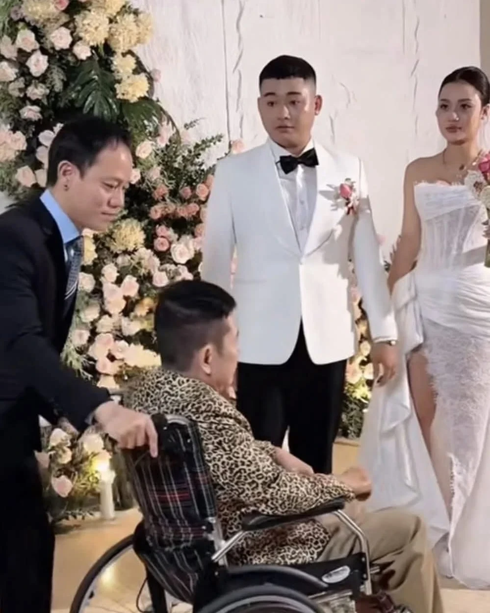 After a serious illness in 2023, comedian Tan Beo's health deteriorated significantly. Despite this, he still made an effort to attend his son's wedding to witness the most important moment of his son's life. At the ceremony, Tan Beo had to use a wheelchair. When going on stage, he was assisted step by step by family, friends, and colleagues. The image of the frail, weak artist, yet with eyes full of love for his son, moved many guests to tears.