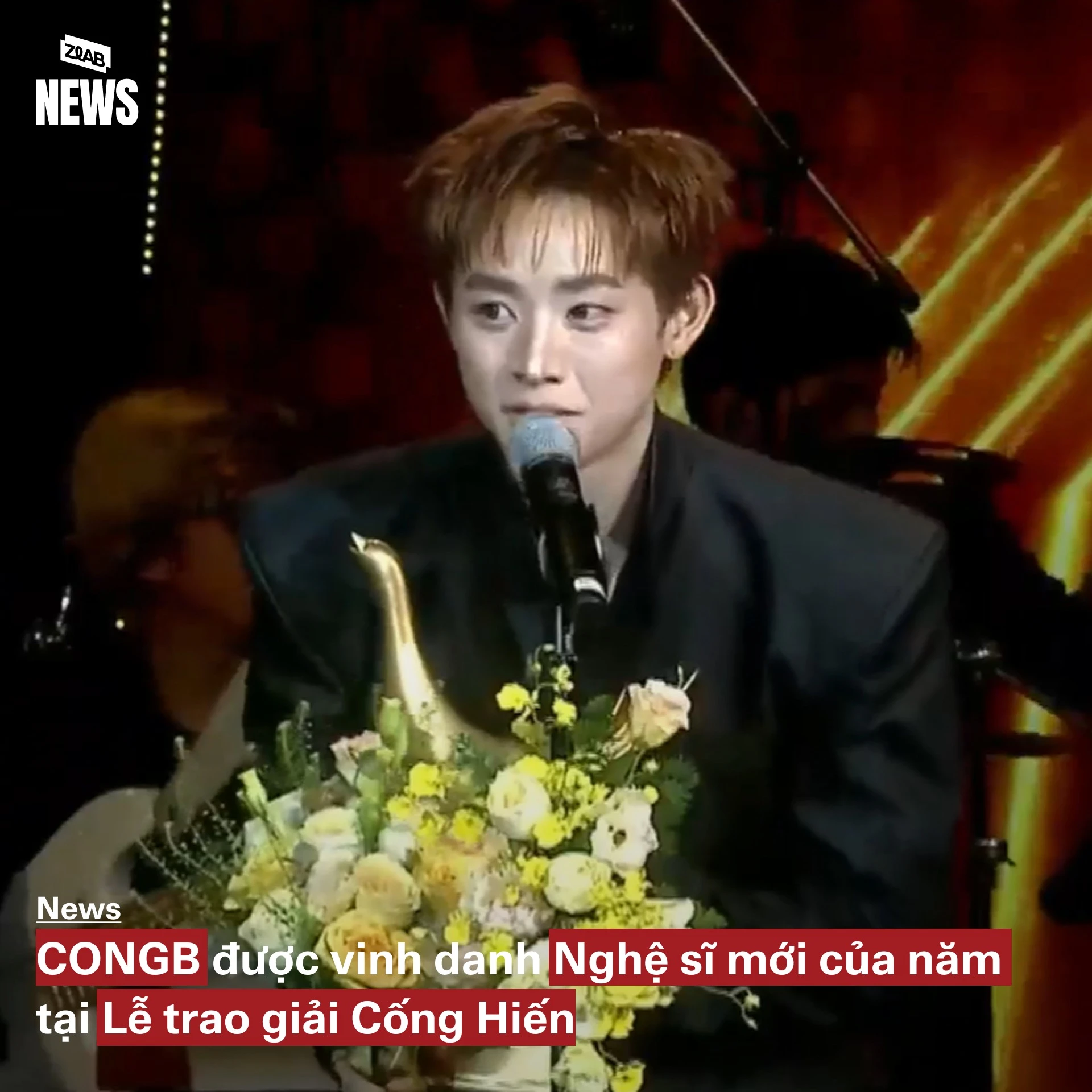 Khoảnh khắc cái tên CONGB được xướng lên, cả khán phòng như bùng nổ trong tiếng vỗ tay chúc mừng. Đứng trên sân khấu với chiếc cúp danh giá, nam ca sĩ không giấu được sự xúc động nghẹn ngào. Với anh, đây là cột mốc lớn nhất trong sự nghiệp cầm ca tính đến thời điểm hiện tại.