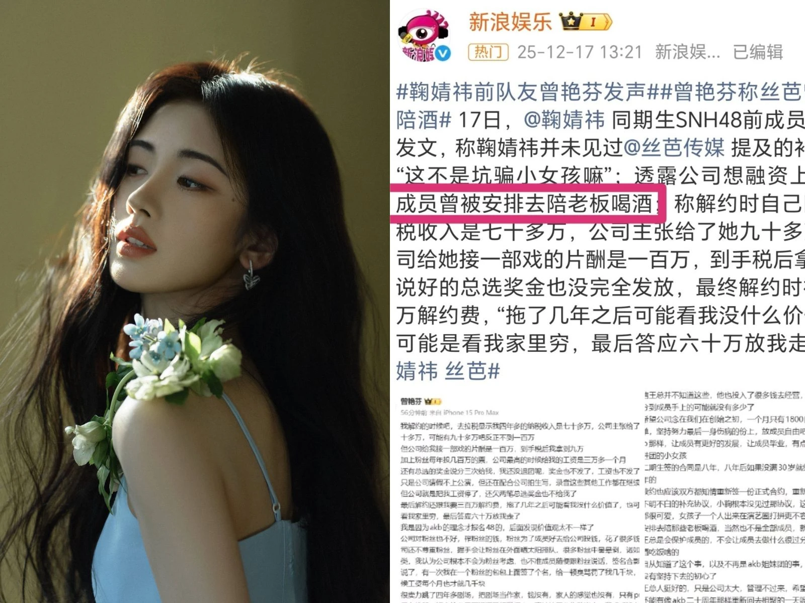 Tensions escalated when Zeng Yanfen, a former member of SNH48, unexpectedly spoke out in support of Ju Jingyi, simultaneously making shocking accusations about the operations of Siba Media. According to Zeng Yanfen, the company frequently forced members, including young children, to participate in private parties, karaoke sessions, and meals with "senior executives." There, the young women endured crude jokes and inappropriate physical contact under the guise of "business networking."