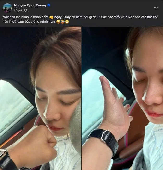 On his personal page, Cuong Do La posted a unique photo: he raised his "powerful" fist right next to Dam Thu Trang when she was asleep. Attached to this "aggressive" photo is the status line "causing a storm": "The roof of the house is messy, I punched right away... You don't dare to say anything! Do you see? How is the roof of your house?! Do you dare to turn on the same as me?".