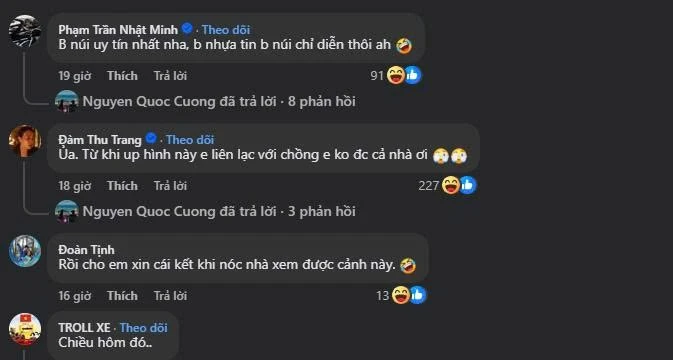 However, the "main reaction" from Dam Thu Trang is the most awaited part of the audience and makes everyone laugh. Cuong Do's wife quickly commented with an extremely charming sentence: "Oh. Since uploading this photo, I can't contact my husband, the whole family?". This answer is the perfect "ending" to the joke, implicitly affirming that every act of "prestige" is just a joke, and the real power still belongs to the "roof". This interaction proves one thing: "just say it for fun, but who dares to be honest!".