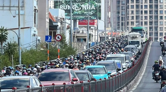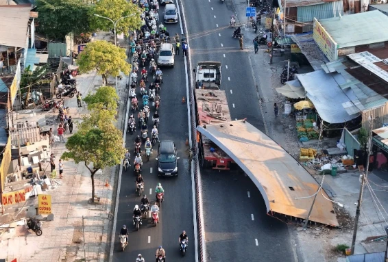 The accident occurred on what is considered a "bottleneck" connecting the southern area with the center of Ho Chi Minh City, causing traffic chaos in the area from early morning. The steel girder blocking the road brought almost all vehicles heading towards the city center to a standstill, and many secondary roads were also severely affected due to the prolonged traffic congestion.