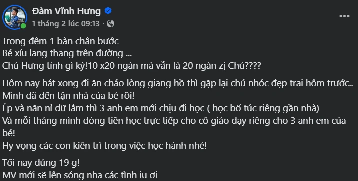 Those simple but sincere confidants quickly received great attention from the online community. Many viewers said that they were not only touched by the amount of money or the act of helping materially, but also because of the way Dam Vinh Hung chose long-term support and the right focus – that is, investing in the education of disadvantaged children.