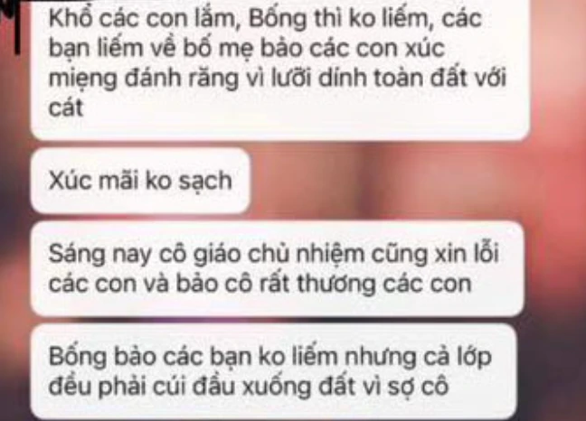 According to initial reports, out of 40 students in the class, 35 were allegedly forced by their teacher to lick dirt in the classroom. The reason given was that the teacher's chair was dirty, and she suspected the students were responsible. This information, after appearing on social media, immediately sparked heated debate. Many expressed outrage, arguing that if the incident was as reported, it was an anti-educational act that seriously affected the psychology and dignity of young children.