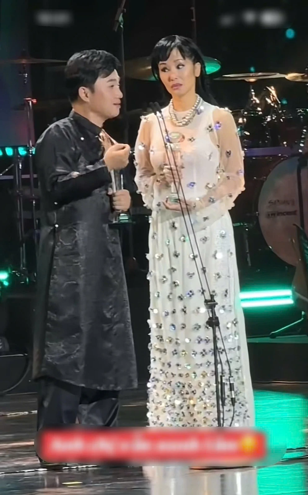 Netizens quickly divided into fierce debates. One part expressed sorrow for the idol's health condition, while others focused on dissecting the fashion sense that accidentally exposed all the female singer's body flaws. Many comments said that this appearance looked so "strange" that it was impossible to recognize the ageless woman. However, if you look deeply at the incident, the public gradually realizes a frightening professionalism. Although her body was crumbling, Hong Nhung still stood upright, held the trophy firmly and tried to keep her demeanor as poised as possible.