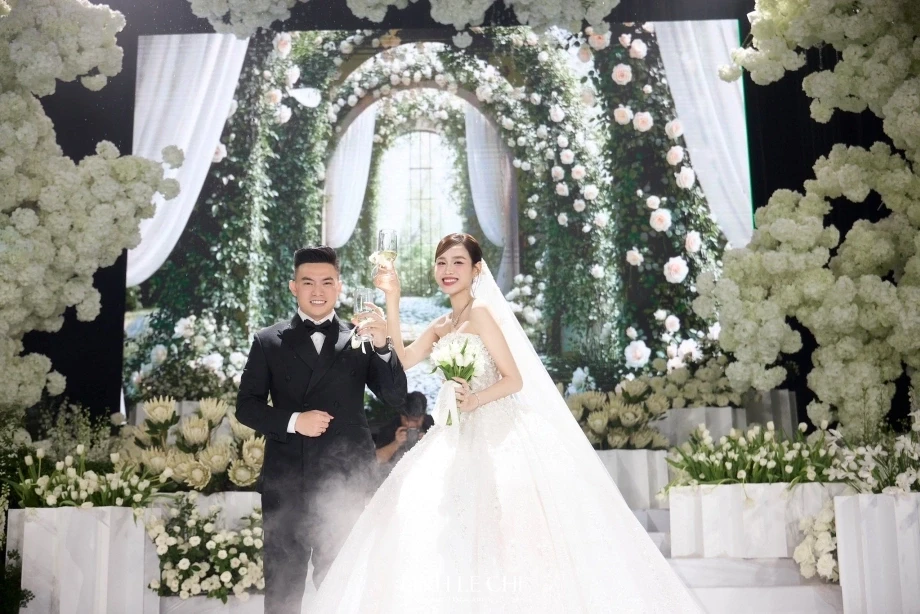 These figures immediately caused a stir on online forums. Many people could not help but admire the lavishness of the wedding, even calling it "the most magnificent super wedding in Vbiz" since the beginning of 2025. The images that were spread about the scene filled with fresh flowers, splendid lighting and a specially built stage also made the story more "credible" in the eyes of many people.