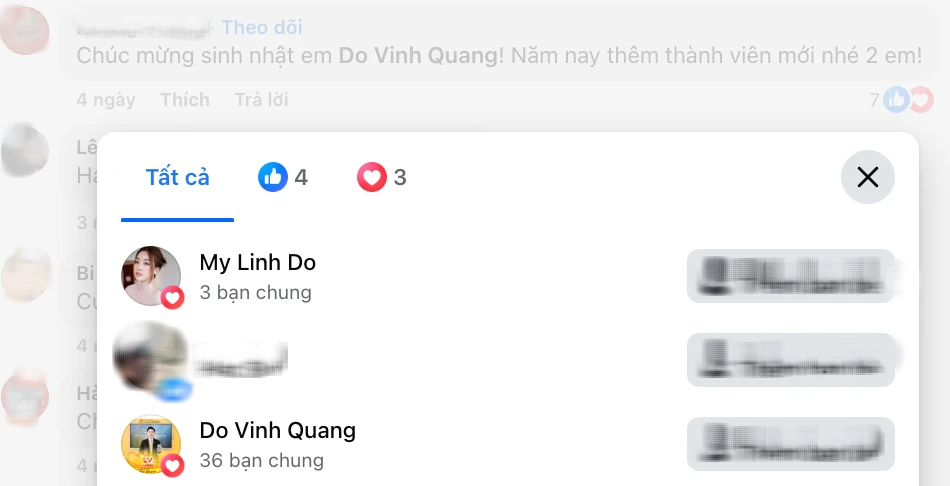 Giữa rất nhiều lời chúc, một bình luận bất ngờ gây chú ý khi gửi gắm mong muốn cặp đôi sớm đón thêm thành viên mới trong năm nay. Điều đáng nói là thay vì né tránh hay giữ im lặng trước lời chúc mang tính riêng tư này, cả Đỗ Vinh Quang và Đỗ Mỹ Linh đều đồng loạt "thả tim" phản hồi. Chính hành động nhỏ nhưng đầy đồng điệu ấy lập tức trở thành đề tài bàn luận sôi nổi trên mạng xã hội.