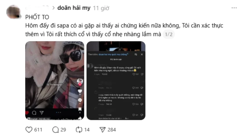 Immediately, this information topped search trends on many platforms. Some "internet detectives" even cited the fact that the Top 20 Miss Vietnam 2022 contestants had checked in at Sa Pa to add credibility to the rumor. Despite the lack of photos or videos as evidence, the post spread rapidly, causing Doan Hai My to receive a lot of unfounded criticism.
