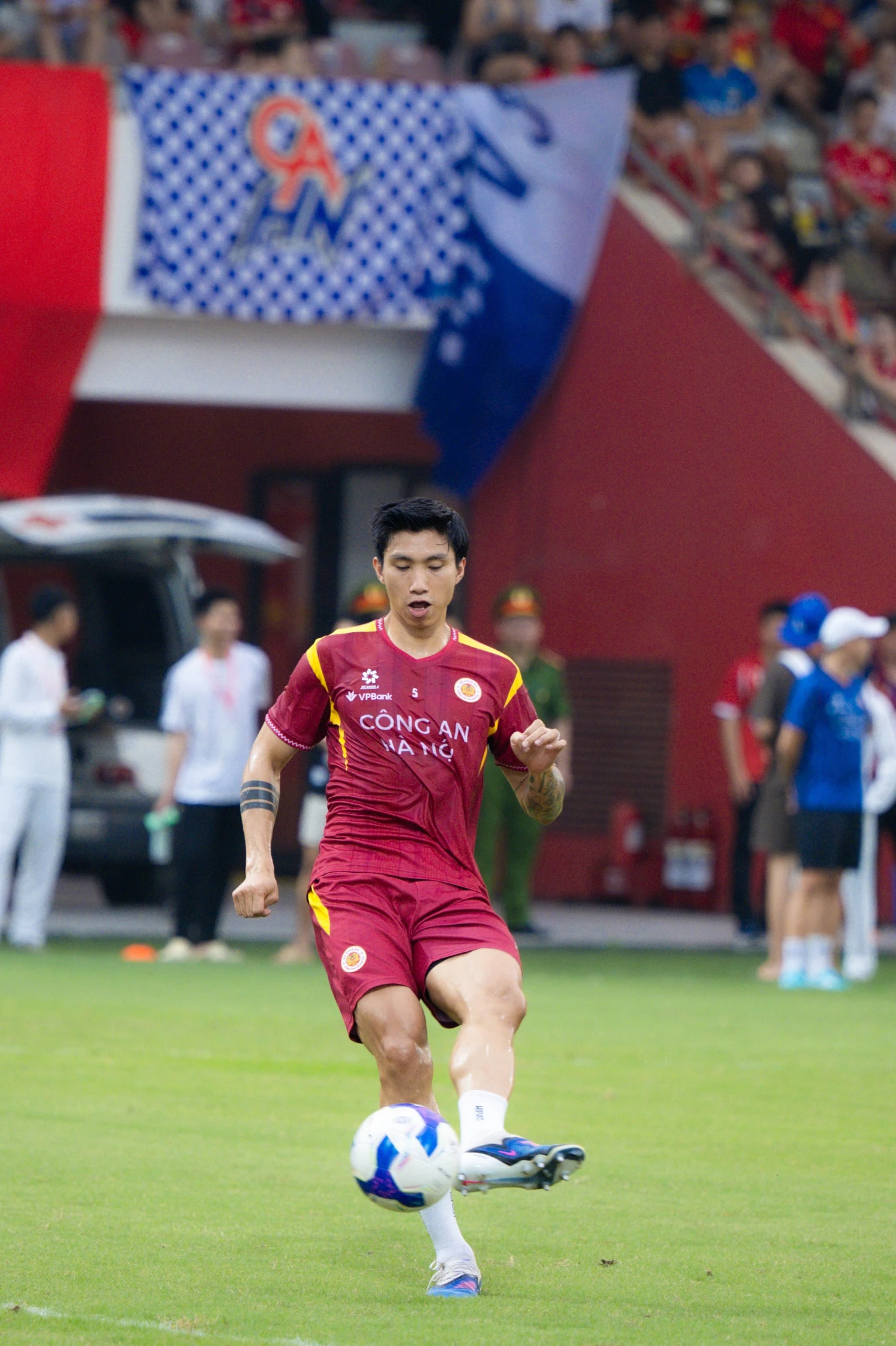 In this match, Doan Van Hau was trusted by coach Polking to start. This is not surprising, as the 1999-born defender is maintaining consistent form and playing a crucial role in the tactical system of CAHN Club. The police force team currently leads the V.League standings, so the match against PVF-CAND is crucial in the championship race. A victory would help them consolidate their leading position and create an advantage over their chasing rivals.