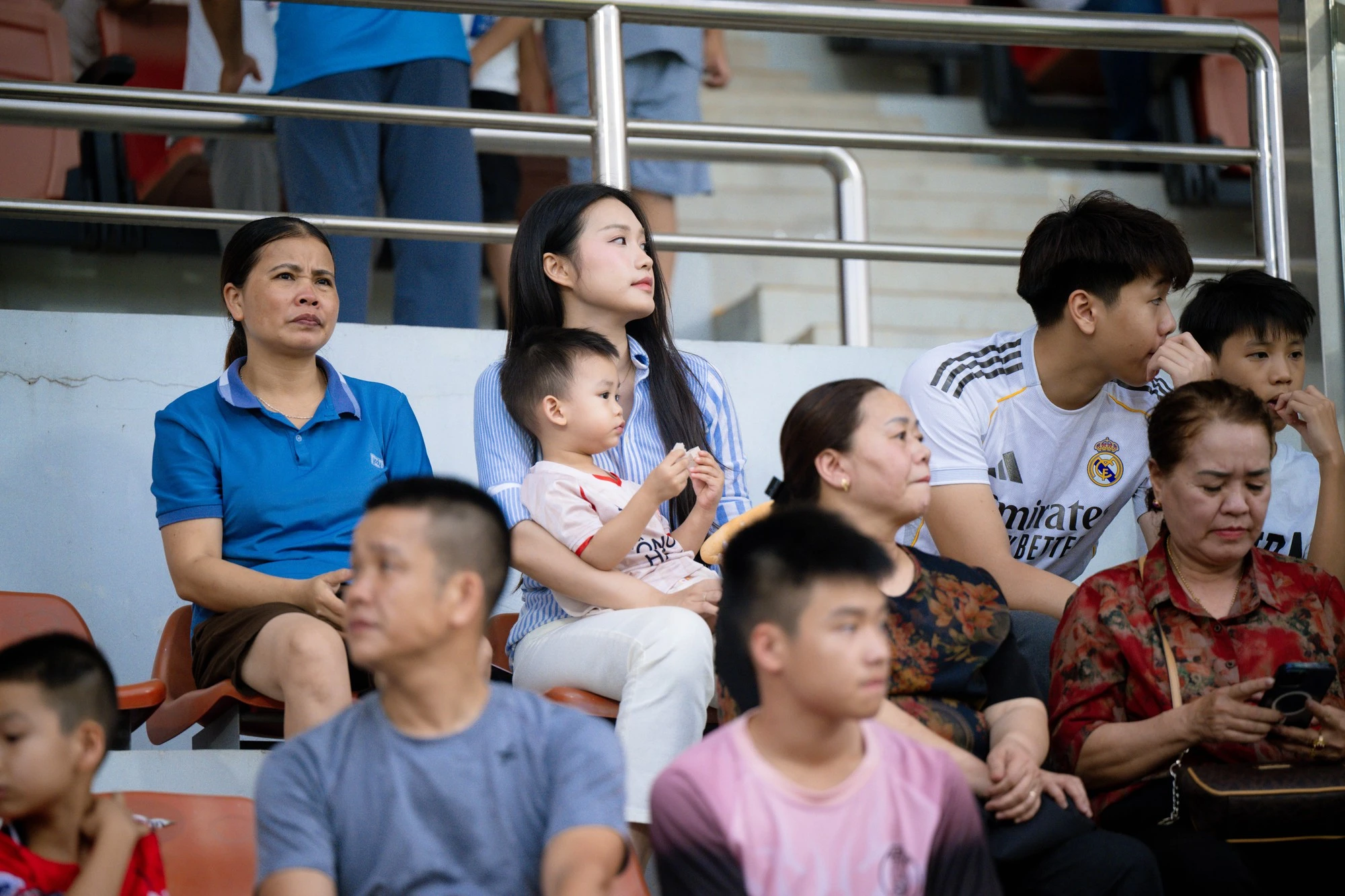The atmosphere in the stands became even more vibrant. Fans of both teams created a passionate atmosphere, with Doan Hai My's presence adding to the appeal of the match. Many spectators continuously recorded moments of the WAG cheering and shared them on social media. Images of her intently watching every play, sometimes jumping up in anticipation, showed her strong bond and support for her husband in his football career.