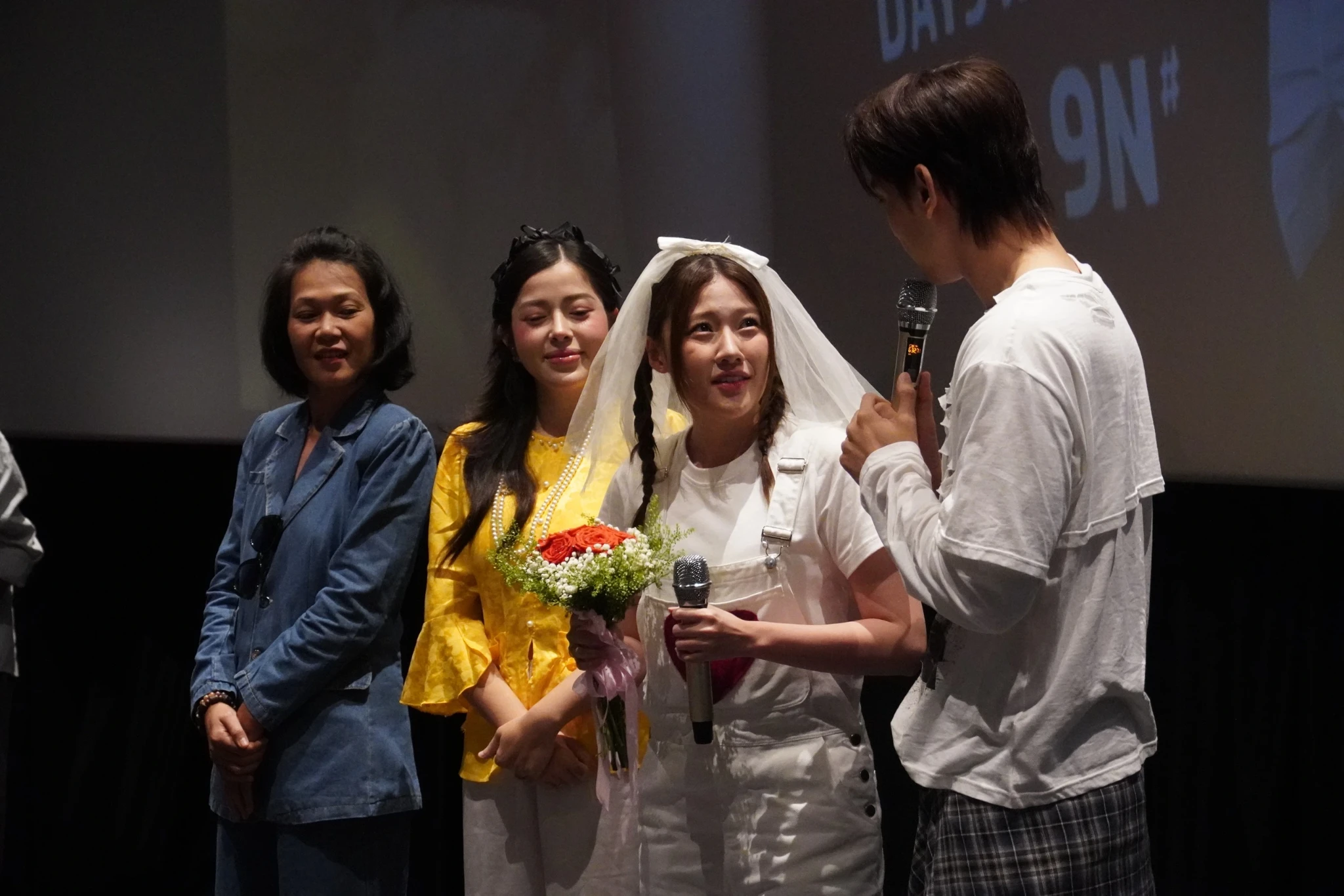 Trong đoạn clip lan truyền chóng mặt, diễn viên Thuận Nguyễn bất ngờ rút ra cặp nhẫn và trao cho bạn diễn Uyển Ân. Em gái Trấn Thành đã tỏ ra ngượng ngùng, quay mặt đi trong bối rối trước khi cặp đôi đeo nhẫn cho nhau. Thuận Nguyễn thậm chí còn đội khăn voan và trao bó hoa cưới cho Uyển Ân. Hành động táo bạo và lãng mạn của anh khiến khán giả phía dưới hú hét, cổ vũ trong phấn khích.
