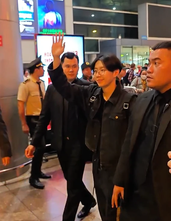 Phái mạnh cũng không hề kém cạnh về độ thu hút. "Tổng tài" Jay Park xuất hiện với kiểu tóc "bổ luống" và cặp kính lạ lẫm hơn thường ngày. Anh nhanh chóng "đốn tim" người hâm mộ Việt bằng những cử chỉ chào hỏi thân thiện, dễ thương ngay tại sảnh sân bay, mang đến sự ấm áp cho không khí náo nhiệt.