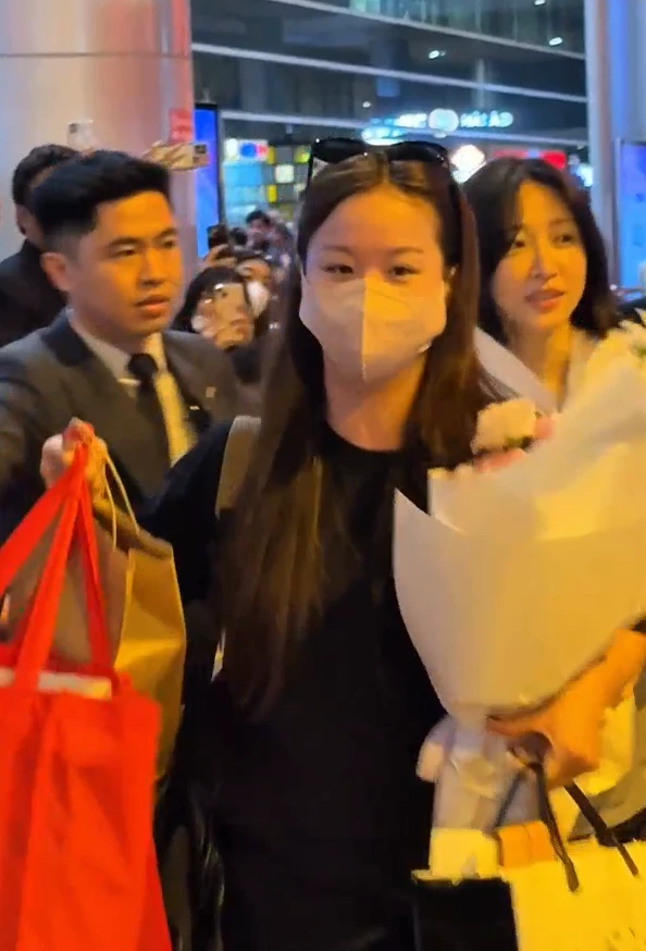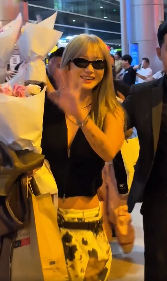 Cùng làm náo động sân bay là nhóm nhạc nữ huyền thoại EXID. Các cô gái trở lại Việt Nam với phong cách cực kỳ cá tính. Đặc biệt, rapper LE nổi bật với set đồ đậm chất street style: áo crop top kết hợp cùng quần họa tiết độc đáo, cùng mái tóc vàng rực rỡ, khẳng định phong cách "chị đại" cực chất. Trong khi đó, Hani diện đồ thể thao năng động, Junghwa khoe làn da không tì vết, còn hai giọng ca chính Solji và Hyelin lại chọn trang phục khá đơn giản, thoải mái cho chuyến bay dài.