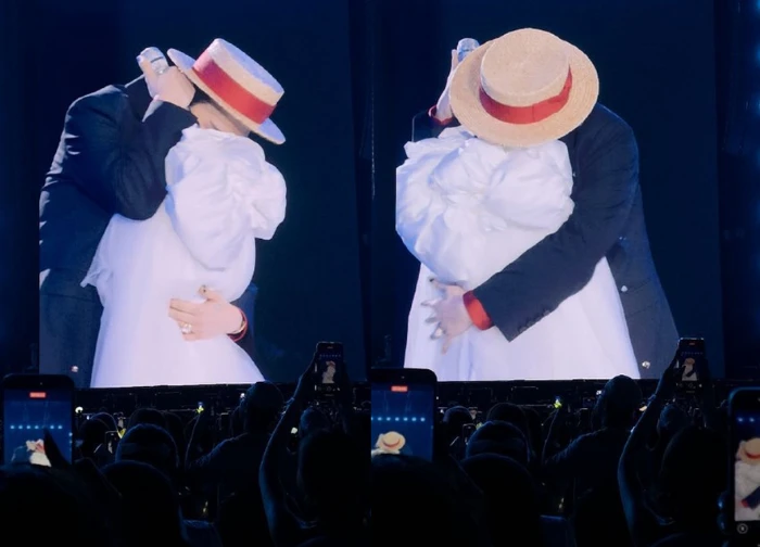 A remarkable and "bewildering" image on social networks after the night of D-2 was the moment when G-DRAGON collapsed, hugging the microphone leg tightly with a sobbing appearance. The photo has a high artistic tone, with a microphone leg designed like a bride, and GD in an elegant black suit like a groom, creating a deep sense of loneliness and "depression". Many fans watching online were extremely moved, thinking that this was a moment of turmoil and sobriety of the male idol when he was about to part with international audiences. Many people even liken von GD to hugging his "bride".