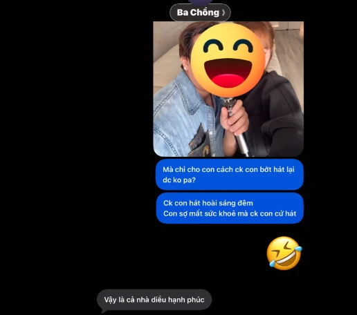Trong loạt tin nhắn vừa được Hari Won chia sẻ, nữ ca sĩ đã than thở và mách bố chồng về việc Trấn Thành liên tục hát hò suốt đêm, bày tỏ sự lo lắng cho sức khỏe của chồng. Hari Won còn hài hước hỏi ý bố chồng có cách nào để trị được Trấn Thành khỏi thói mê ca hát này.