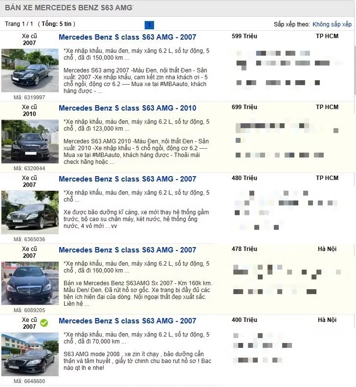 Trên các trang thông tin mua bán xe khác, Mercedes-AMG S63 đời cũ được rao bán với mức giá dao động khoảng 400 đến 699 triệu đồng, tùy thuộc vào tình trạng và năm sản xuất. Tuy nhiên, những chiếc xe được rao bán thường vẫn còn khả năng vận hành và được bảo dưỡng ở mức nhất định. Trong khi đó, chiếc xe bị bỏ quên tại Hà Nội gần một thập kỷ chắc chắn đã chịu ảnh hưởng lớn từ môi trường.