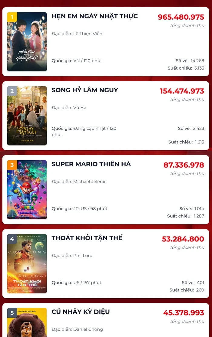Theo số liệu từ Box Office Vietnam, "Hẹn em ngày nhật thực" đang duy trì phong độ ổn định với khoảng 3.000 suất chiếu mỗi ngày, bỏ xa các đối thủ ra mắt cùng thời điểm như "Song hỷ lâm nguy" hay "Phi vụ cuối cùng". Sức nóng của bộ phim không chỉ đến từ đề tài lãng mạn xen lẫn yếu tố hiện tượng thiên văn kỳ thú, mà còn nhờ vào ngôn ngữ điện ảnh đạt đến độ chín muồi. Sự giao thoa giữa ánh sáng và bóng tối trong phim trở thành ẩn dụ xuyên suốt cho hành trình tìm lại chính mình của những người trẻ giữa cuộc sống bộn bề.
