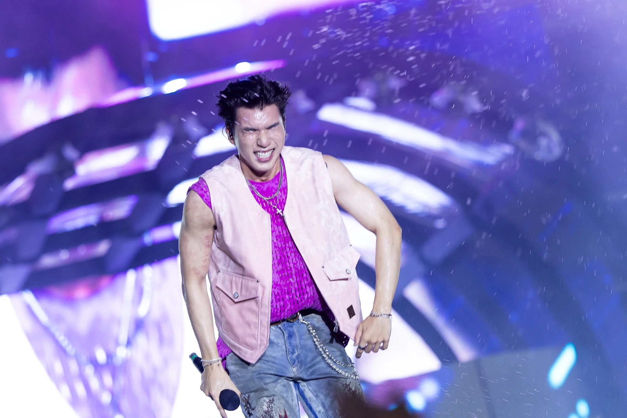 Nam rapper không ngừng nhún nhảy, "cà hẩy" nhiệt tình và tạo nên khoảnh khắc "bùng nổ" khi vén áo khoe trọn cơ bụng săn chắc. Ngay lập tức, hành động này khiến cả biển khán giả "hú hét um sùm" và tạo nên một làn sóng nhiệt độ lan tỏa, khuấy động không khí tưng bừng của WATERBOMB HOCHIMINH D-1.