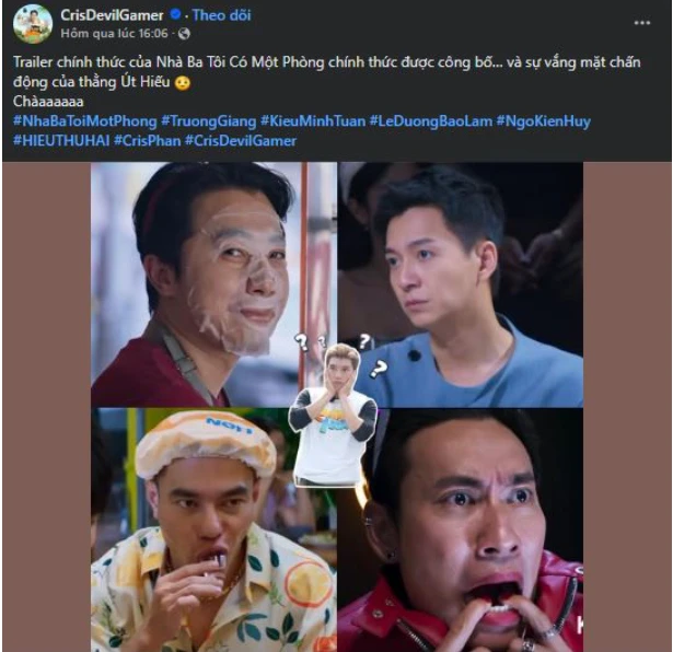 This absence immediately became a hot topic on entertainment forums. Even seniors such as Cris Phan, Kieu Minh Tuan publicly "coffee" the youngest brother on social networks, making fans both funny and bewildered. Many viewers asked: Is there a rift or is it simply a matter of scheduling?