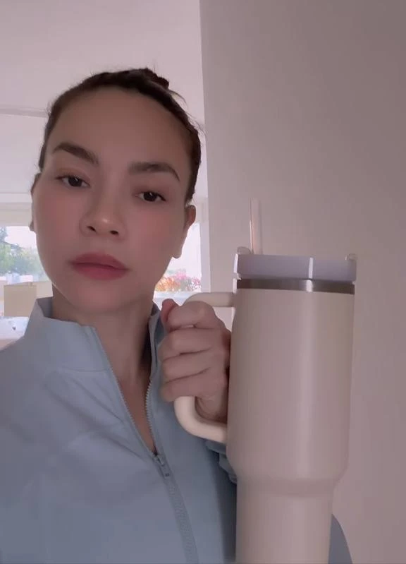 Alongside her diet, Ho Ngoc Ha doesn't forget to take care of her skin and overall health. She maintains the habit of drinking 2.5 to 3 liters of water every day, which helps detoxify her body and aid digestion. In the evening, the singer chooses to drink a cereal mixture made from various beans mixed with protein to replenish nutrients without causing fat accumulation.