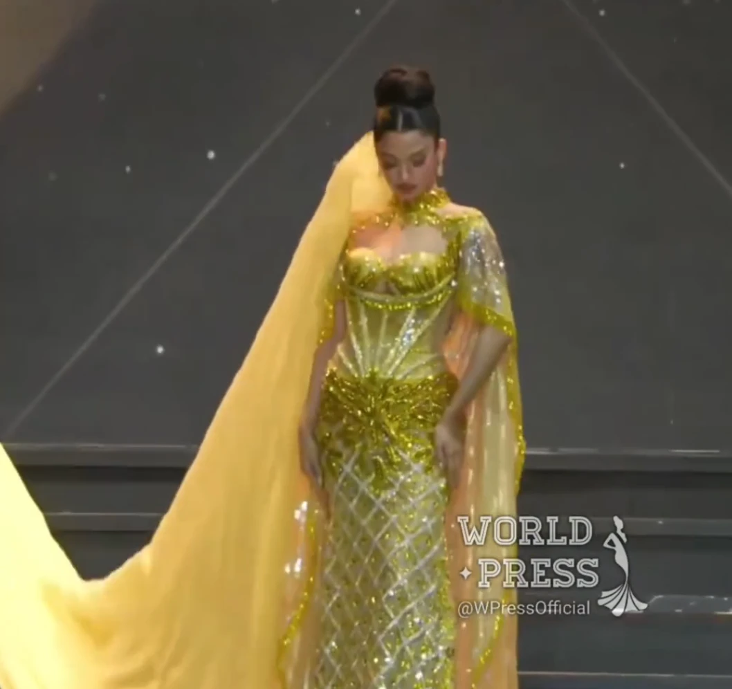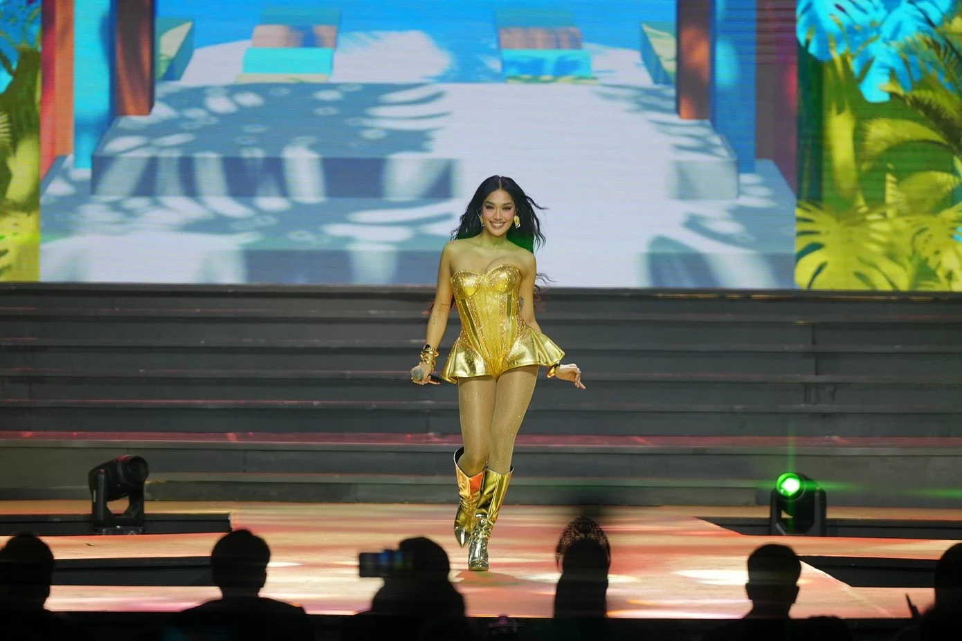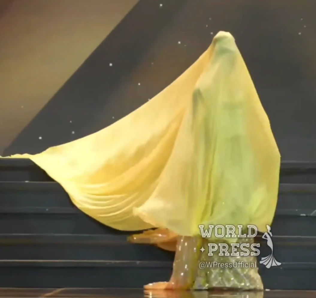 Khi bước ra sân khấu, người đẹp Nikhisah Buenafe Cheveh - đại diện Quezon City - đã sử dụng một chiếc khăn voan màu vàng để trùm kín đầu. Sau đó, chiếc khăn được kéo xuống, để lộ ra gương mặt và bộ váy dạ hội lấp lánh của người đẹp, khiến khán giả reo hò không ngớt.