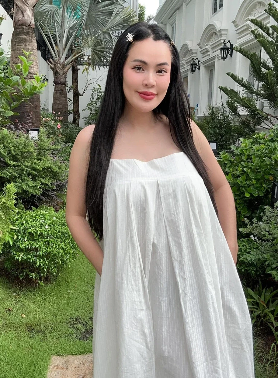 Những bộ váy rộng, dáng suông cũng dễ che hoặc làm biến dạng vòng bụng. Thậm chí, tư thế di chuyển hoặc góc chụp cũng có thể khiến bụng bầu lúc to lúc nhỏ, điều này vốn là bình thường với phụ nữ mang thai.