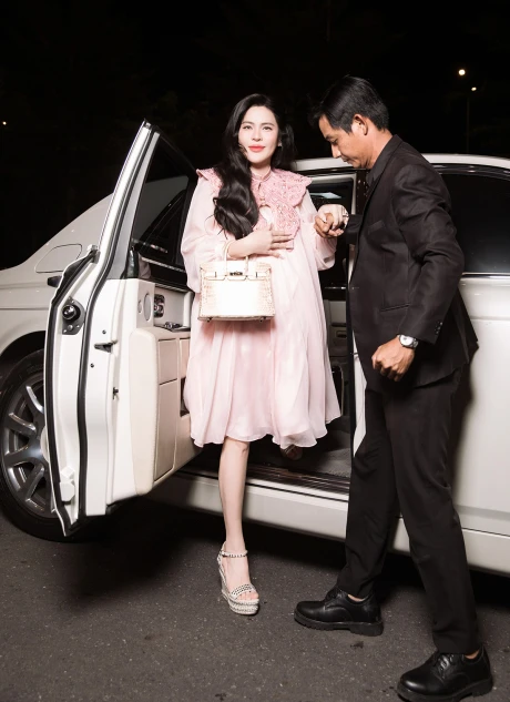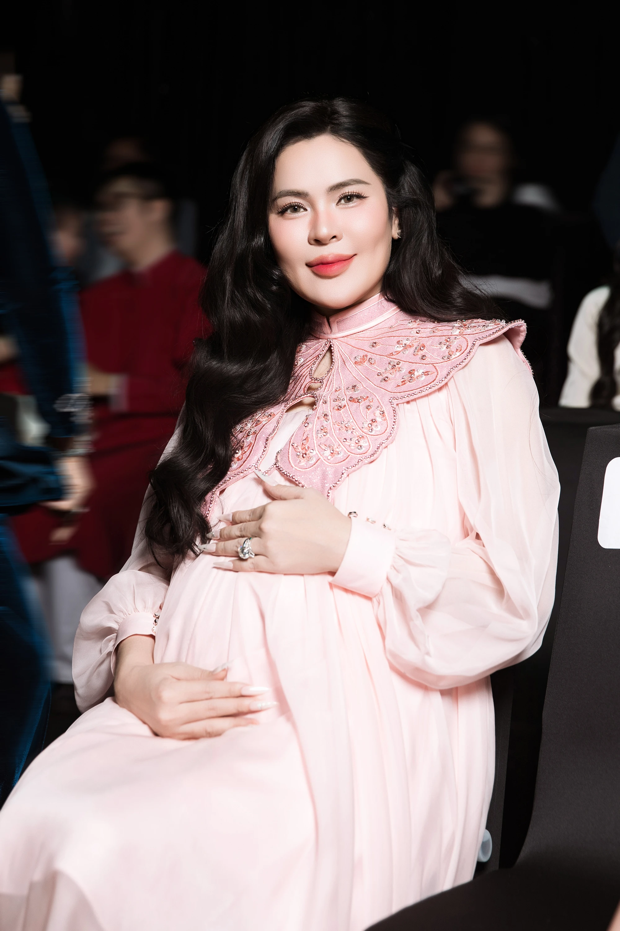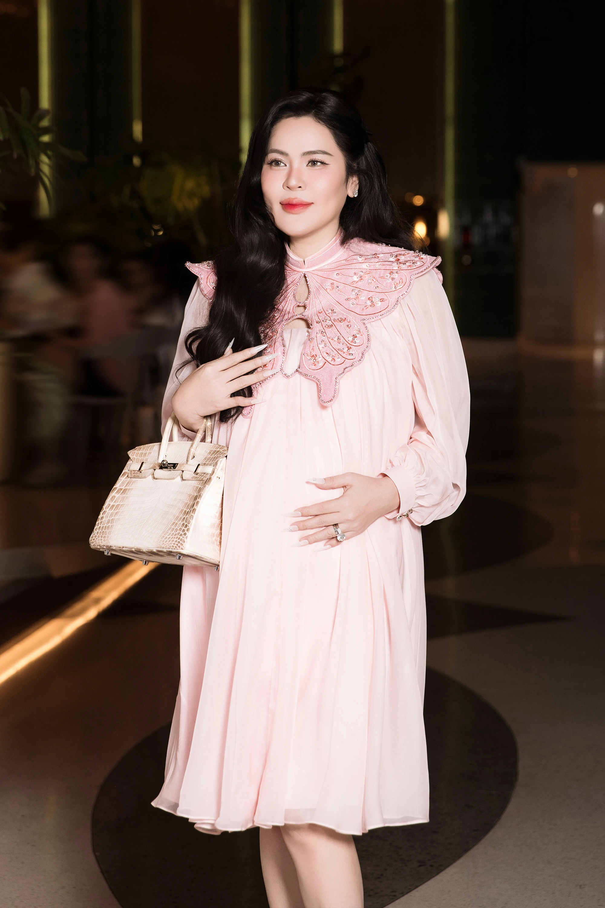 Người đẹp bế bầu 8 tháng, xách túi da cá sấu bạch tạng, trị giá hàng tỷ đồng đi xem show của nhà thiết kế Linh San.