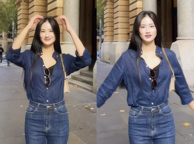 Trong clip, Ý Nhi lựa chọn phong cách denim-on-denim cực kỳ cá tính. Sự kết hợp giữa áo và quần jeans đơn giản không làm mất đi vẻ thời thượng mà ngược lại, còn tôn lên vóc dáng cân đối và thần thái rạng rỡ của cô. Với nụ cười tươi tắn và làn da trong trẻo, Ý Nhi chứng minh đẳng cấp nhan sắc "không cần trang điểm cầu kỳ" vẫn đủ sức chinh phục khán giả.