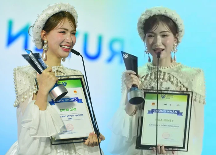 On the evening of November 29, at the Vietnam iContent Awards 2025 ceremony held at Military Zone 7 Stadium, singer Hoa Minzy became the center of attention when she excellently won double in two important categories: "Individual for the Community" and "Inspirational Music".