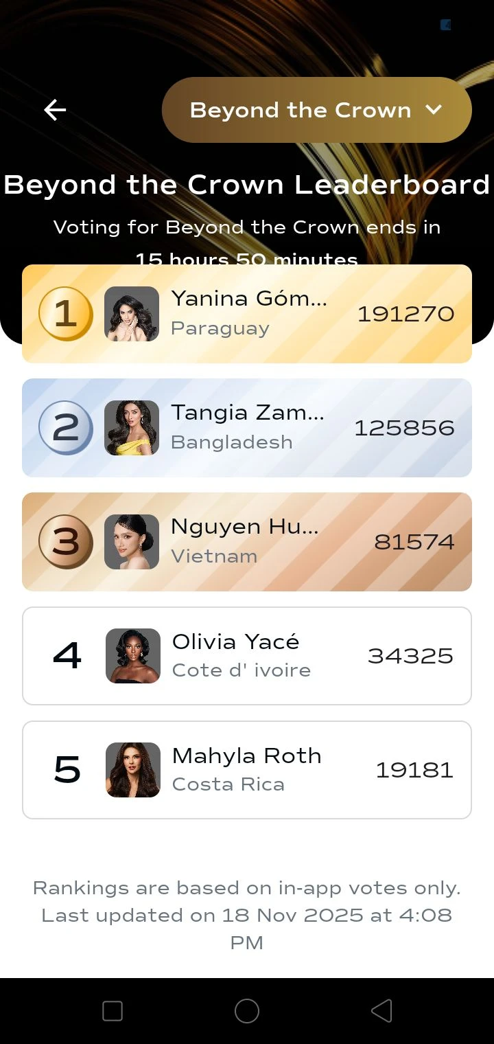 Biết được nguyện vọng của Hương Giang là muốn dự án nhân ái "Beyond the Crown" được phổ biến rộng rãi, Hoà Minzy đã không tiếc chi 264 triệu đồng để mua vote giúp nàng hậu rút ngắn khoảng cách với các vị trí dẫn đầu.