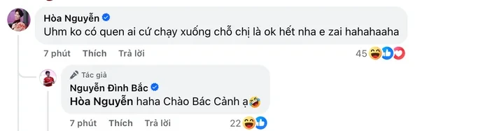 Not letting the seniors wait long, Dinh Bac also responded with a polite but no less muddy greeting: "Haha, hello Uncle Cang". The way to call "Uncle Canh" – a nickname associated with a funny role/image of Hoa Minzy before – shows that the relationship between the two is very comfortable and close.
