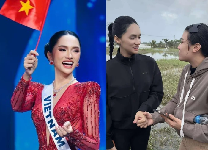 Hương Giang ngay sau khi kết thúc hành trình tại Miss Universe đã trở về Việt Nam và trực tiếp đến vùng chịu thiệt hại nặng bởi mưa lũ, thăm hỏi từng hộ dân, trao quà hỗ trợ và lan tỏa tinh thần sẻ chia.