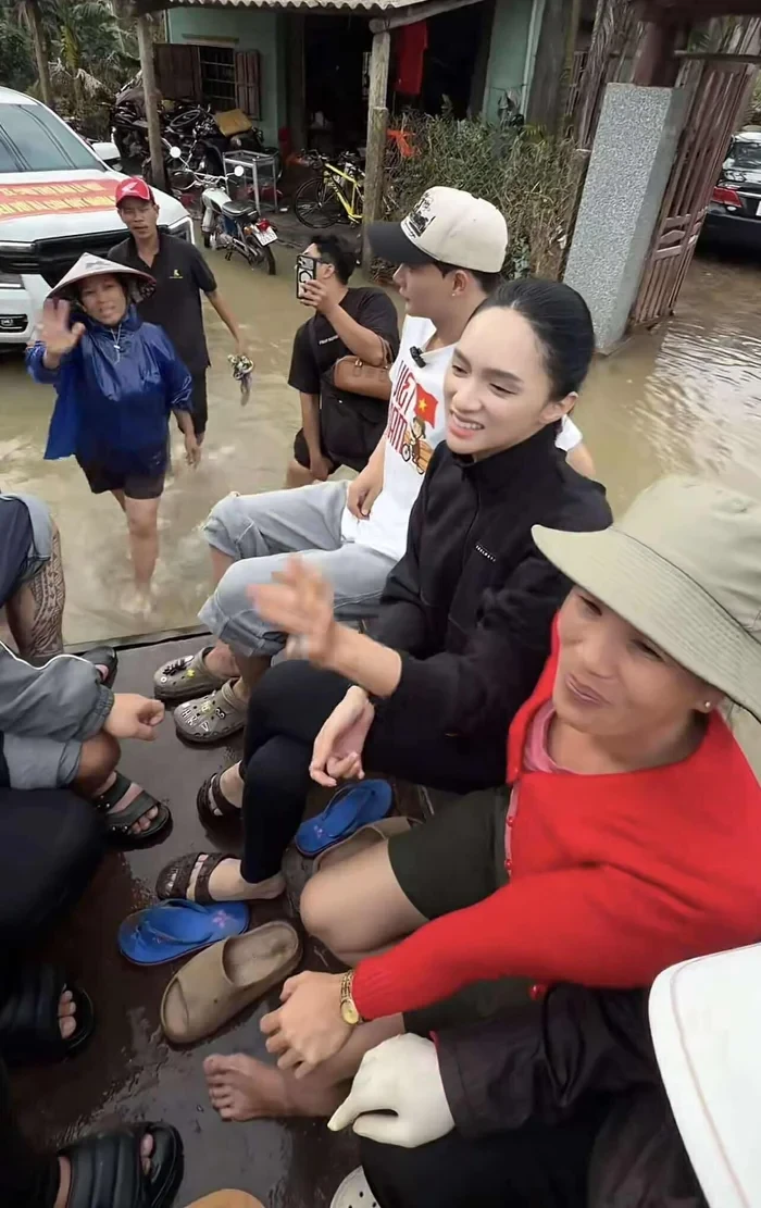 Những hình ảnh mới nhất ghi lại cảnh Hương Giang diện trang phục đời thường, gương mặt mộc mạc nhưng vẫn rạng rỡ, thân thiện trò chuyện với người dân khi đi cứu trợ. Khoảnh khắc giản dị này nhanh chóng lan truyền và nhận được sự quan tâm lớn từ cộng đồng mạng.